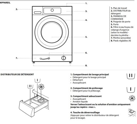 Bac lessive adoucissant lave linge .